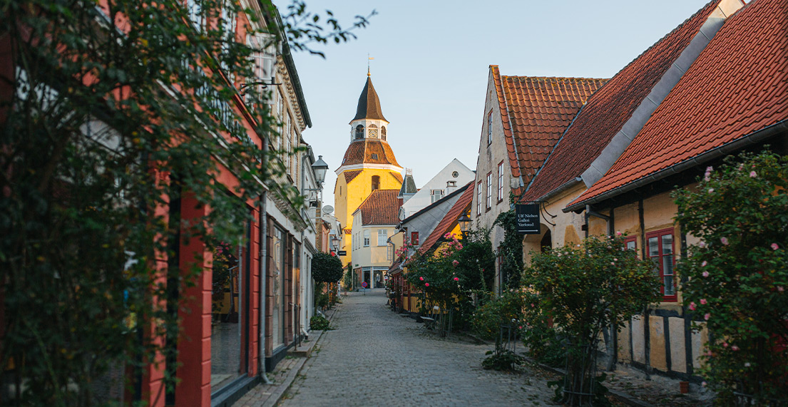 - Ærøskøbing et ses ruelles pavées et fleuries, l'une des plus anciennes villes du Danemark