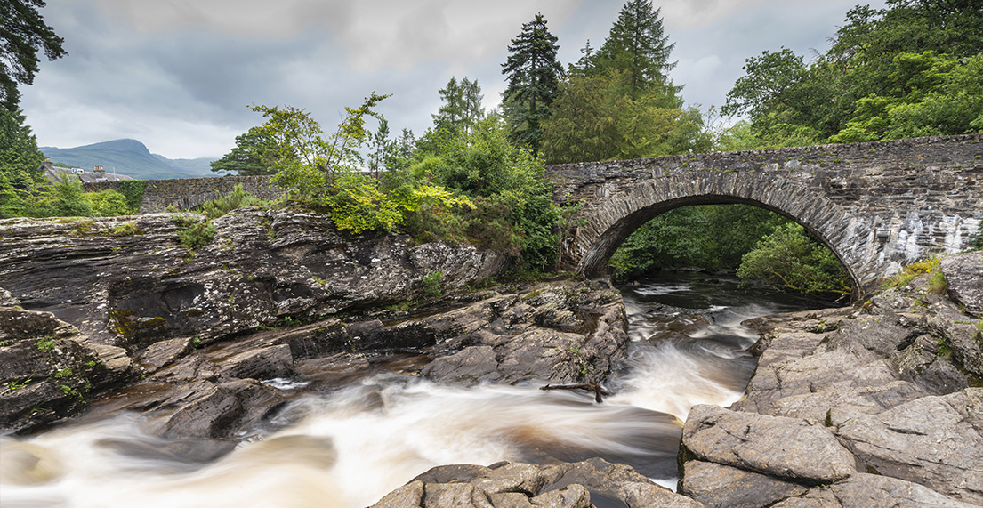 En approchant de Killin, la majestueuse silhouette de Ben Lawers (sommet culminant à 1214m d’altitude) se découpe à l’horizon. Killin, située au bord du Loch Tay, dévoile une atmosphère accueillante et riche d’histoire. Mais son joyau le plus éclatant reste sans conteste les chutes de Dochart, danse tumultueuse de l’eau qui traverse la ville.