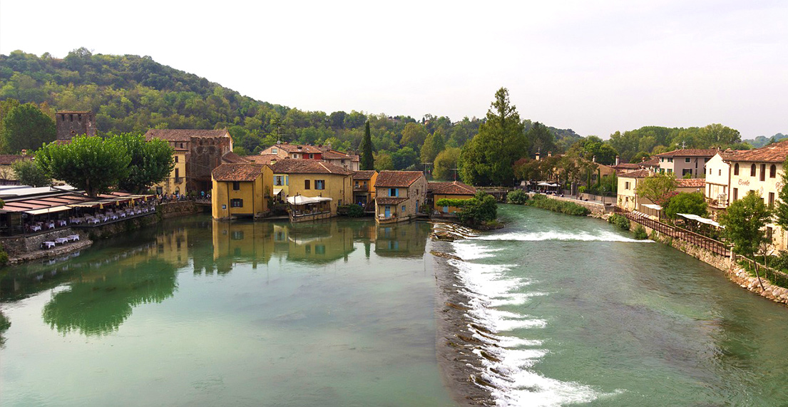 pour commémorer les soldats morts ici pendant les guerres de l’indépendance italienne. La route mène ensuite à Borghetto sul Mincio, un véritable village de conte de fées, avec ses moulins à eau, son château et son pont fortifié. Ne manquez pas de goûter la spécialité locale, les tortellini. Enfin, vous rejoingnez Peschiera del Garda en suivant la piste cyclable du Mincio.