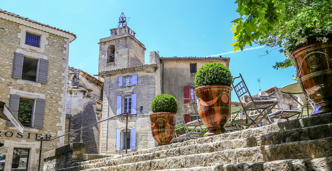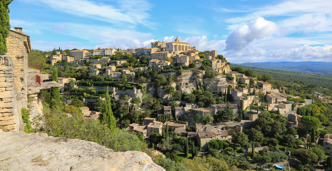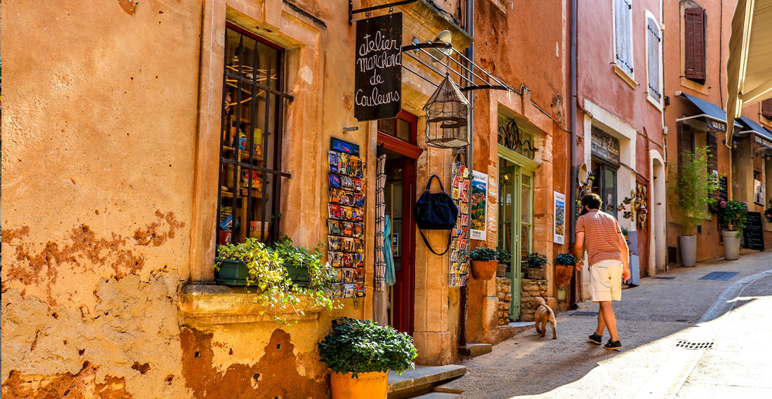 Sportivement, c’est une toute autre journée qui se présente. Le relief vallonné vous impose plus d’efforts mais que la route est belle ! Vous atteignez le village de Lagnes et profitez de son charme médiéval. Puis c’est une route bucolique, à travers bois, vignes et lavandes, qui vous mène au cœur du Parc Naturel Régional du Luberon. Une dernière « ascension » et vous atteignez Roussillon-en-Provence ! Ce « Plus Beau Village de France » doit sa renommée à ses ocres qui donne la couleur des maisons.