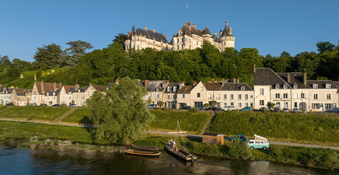 C’est un fleuve d’une force tranquille que vous longez. Il est reposant. Il montre le chemin à suivre. Première halte à Chaumont sur Loire pour son château du XVe et ses jardins. Tous les ans, les jardins de de Chaumont sur Loire se renouvellent et proposent un nouveau thème. Devenu une visite incontournable de la région, vous pourrez aussi y rester pour une pause déjeuner très agréable. Vous découvrez de plus en plus de vigne jusqu’à Amboise. Sur la route des châteaux de la Loire à vélo, vous entrez dans le vignoble de Touraine, vous pouvez apercevoir les premières caves et maisons troglodytiques.