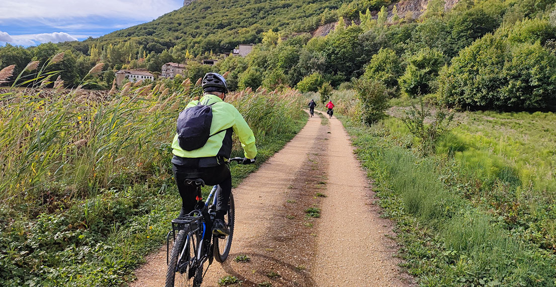 Vous laissez Vitoria derrière-vous et pénétrez en terres Navarraises en utilisant le vaste réseau de pistes cyclables (dénommées bidegorris) de la région. Vous longez le Parc Naturel d’Izki, un espace naturel protégé dont la diversité écologique, les paysages naturels et zones boisées ne sont plus à vanter. Vous pédalez le long de la voie verte du chemin de fer de Vasconavarro jusqu’à Estella. La Navarre offre une étonnante diversité de paysages : des montagnes verdoyantes aux vallées fertiles en passant par les plaines ondulantes, rien ne manque à l’appel. Ville étape importante du Camino de Santiago (Chemin de Saint-Jacques de Compostelle), Estella offre une proposition historique et architecturale intéressante. Ses ponts, ses églises, ses couvents ou encore sa Calle Mayor (l’avenue principale) vous permettent de découvrir l’atmosphère de cette ville.
