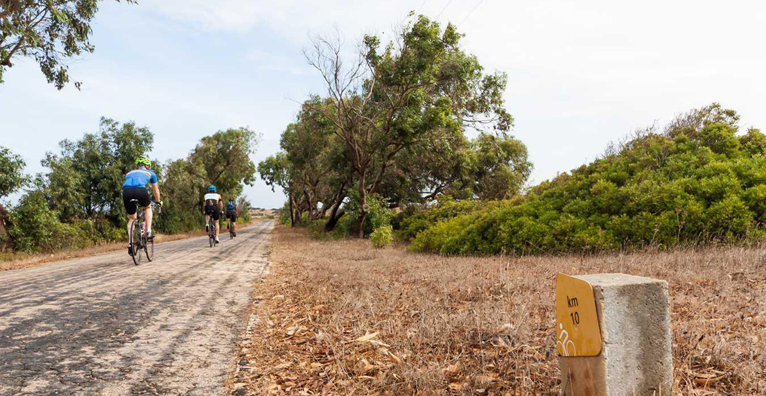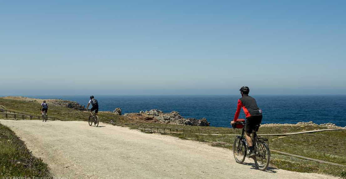 Découvrez les paysages côtiers exceptionnels de l’Algarve à vélo. Les formations rocheuses irrégulières constituent des falaises abruptes, qui illuminées par le soleil se teinte d’une belle couleur dorée. Arches et piliers marins, baignées dans les eaux océaniques turquoises, se dressent fièrement face aux éléments et pour former l’une des plus belles frontières entre la mer et la terre. Une partie est protégée en tant que Parc Naturel du Sud-Ouest Alentejano et Costa Vicentina. L’occasion d’y découvrir une faune et une flore préservées, dont certaines espèces sont endémiques et uniques.