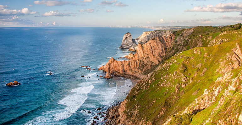 Entre ces sites majeurs, ce qui fait l’identité et le sens de ce voyage à vélo, c’est la découverte de la côte sauvage portugaise du nord au sud. De port en port, votre échappée vous guide le long d’un littoral exceptionnel de la Costa da Prata qui s’étend sur des dizaines de kilomètres et qui offre une fabuleuse mosaïque de paysages côtiers. Des plages époustouflantes sur lesquelles les surfeurs tentent de dompter les plus grandes vagues du monde aux falaises abruptes et déchiquetées d’où vous observez des couchers du soleil haut en couleur. Les paysages sont spectaculaires. En montant sur le Cabo da Roca, vous atteignez le point le plus occidental de l’Europe continentale ! Face à vous l’océan Atlantique s’étire à perte de vue.