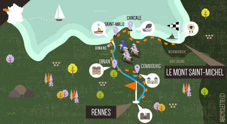 Accompagné d’un guide à vélo, vous vivez un voyage unique en groupe, au cœur de quelques-unes des plus belles cités bretonnes jusqu’au site exceptionnel du Mont Saint-Michel, classé au patrimoine mondial de l’UNESCO. Ensemble, vous cheminez sur de belles voies vertes entre les villes d’Art et d’Histoire, puis le long des spectaculaires paysages maritimes de la Côte d’Emeraude et de la Baie du Mont Saint-Michel. L’itinéraire, varié, est ponctué de découvertes. Il vous promet chaque jour son lot de surprises.