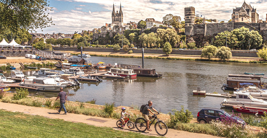 Vous laissez la ville lumière derrière vous. Du château de Saumur à celui d’Angers, vous avancez au travers du Parc Naturel Régional Loire-Anjou-Touraine. Toute l’étape sur les bords de Loire, fleuve impétueux et sauvage, s’élargira un peu plus à chaque kilomètre. Vous irez au travers d’une succession de vestiges antiques et de vieux hameaux caractéristiques vers les ardoisières de Trélazé, autre ressource locale. Une dizaine de kilomètres avant Angers, franchissez la rivière de l’Authion à l’aide du bac à chaîne au port de la Chevalerie. Un moment ludique pour petits et grands ! Enfin vous pénétrerez au cœur de la ville découvrir le vieil Angers avec son château, la maison d’Adam ou encore son incroyable cathédrale.