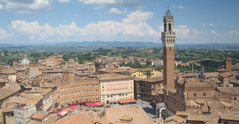 Siena concludes this beautiful day. This medieval city is famous for its Piazza del Campo, which hosts horse races and the arrival in early March of the Strade Bianche cycling classic. In all the historical streets of the city, pay attention to the small badges on the facades. Representing an animal, they distinguish the neighborhoods that form the teams for the horse races.